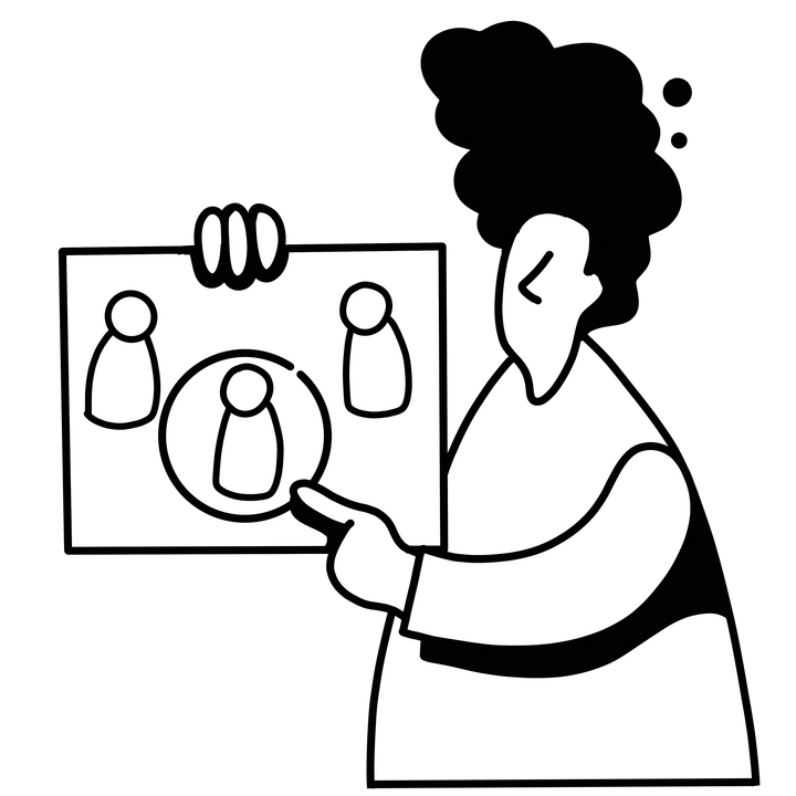 Stilisierte Person präsentiert eine Grafik mit drei Personen, von denen eine isoliert ist